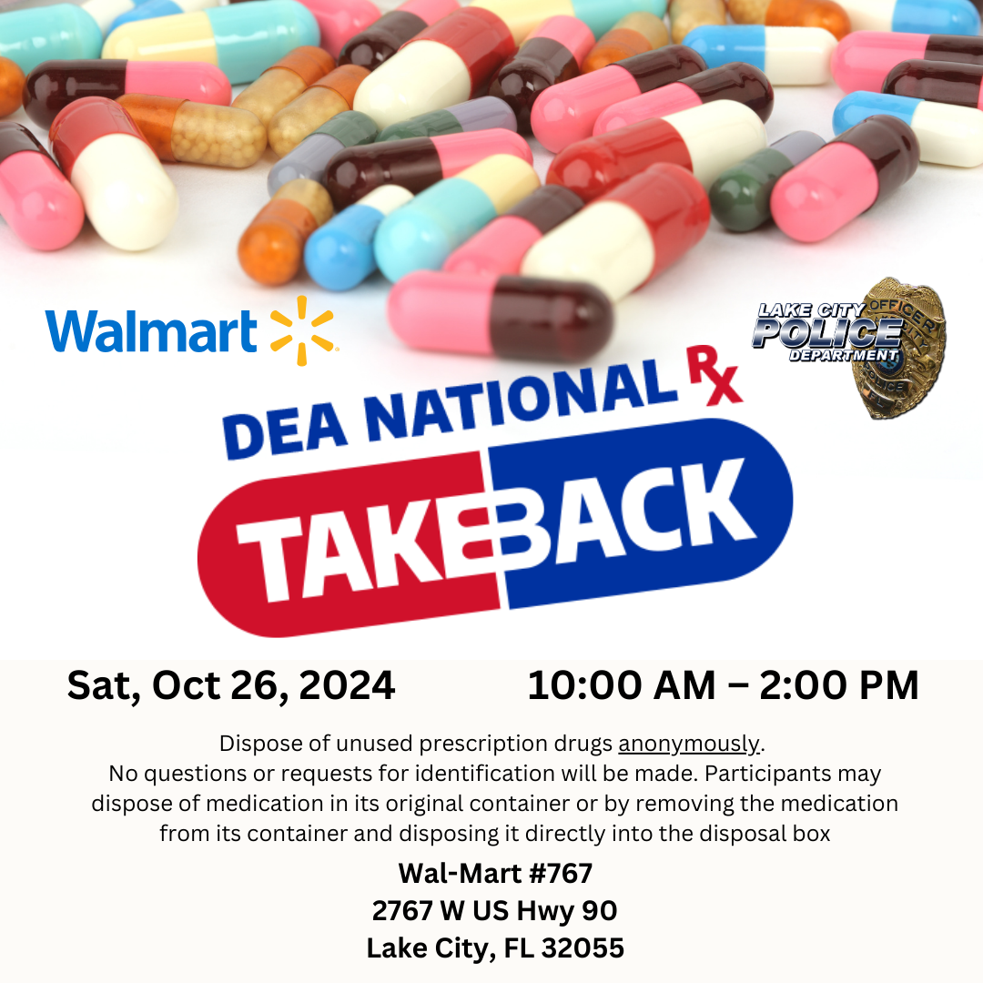 Walmart has partnered with the Lake City Police Department to participate in the National Prescription Drug Take Back.