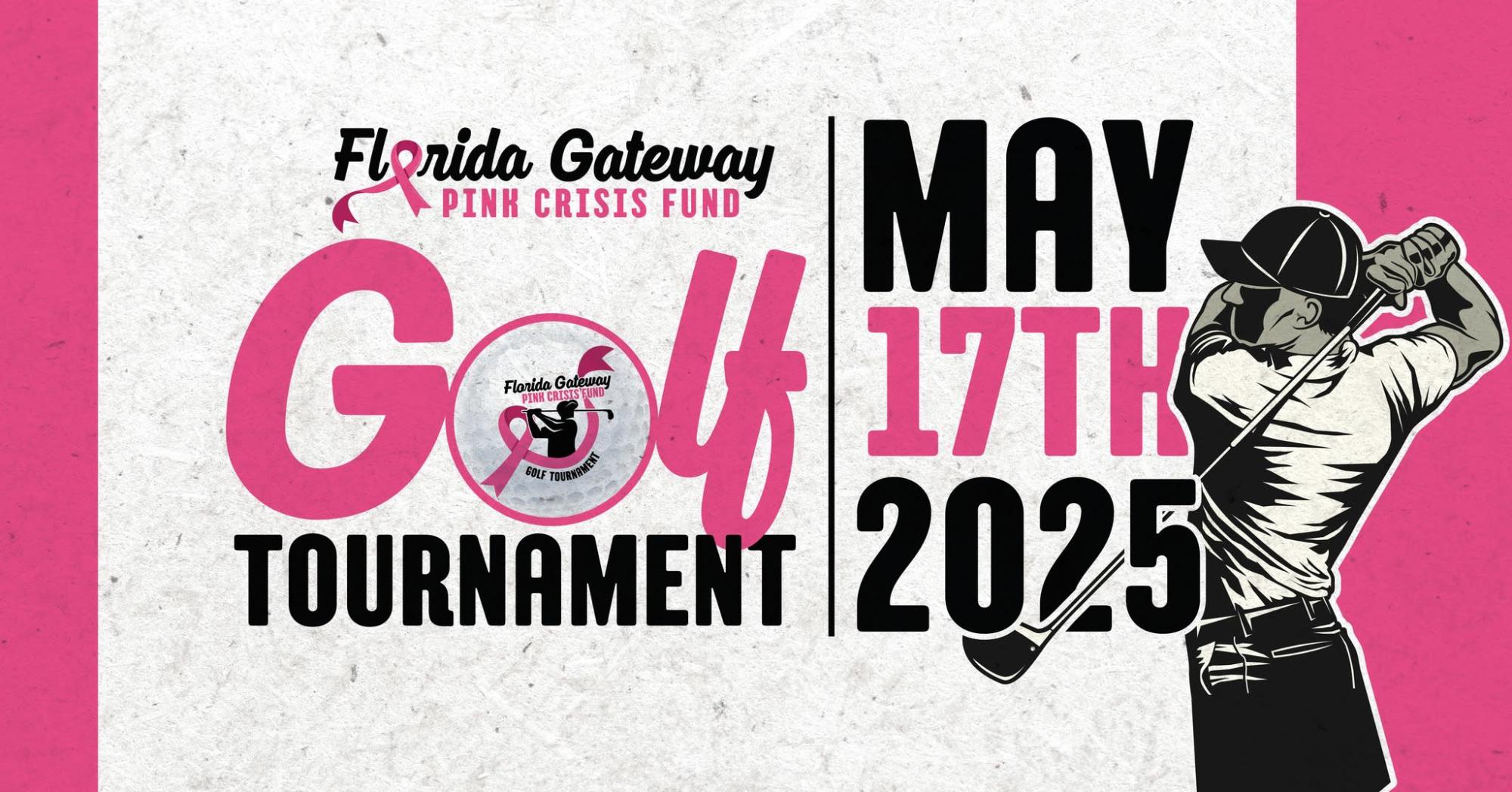 The Florida Gateway Pink Crisis Fund Annual Golf Tournament is May 17th, 2025, at Quail Heights Country Club. Calcutta Party benefitting Florida Gateway Pink Crisis Fund- May 16, 2025, bidding starts at 7:00pm.