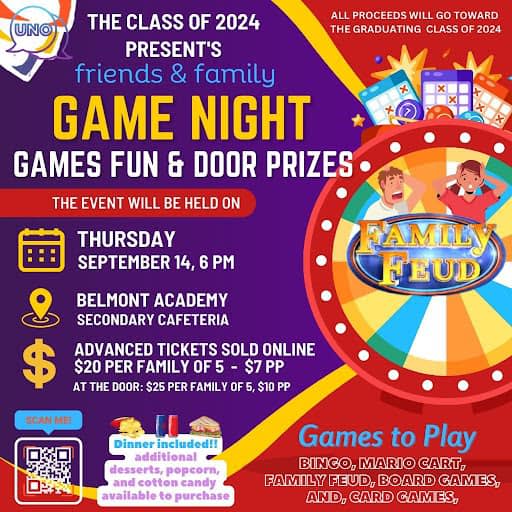 Friends and Family Game Night Presented by Belmont Academy's Senior Class