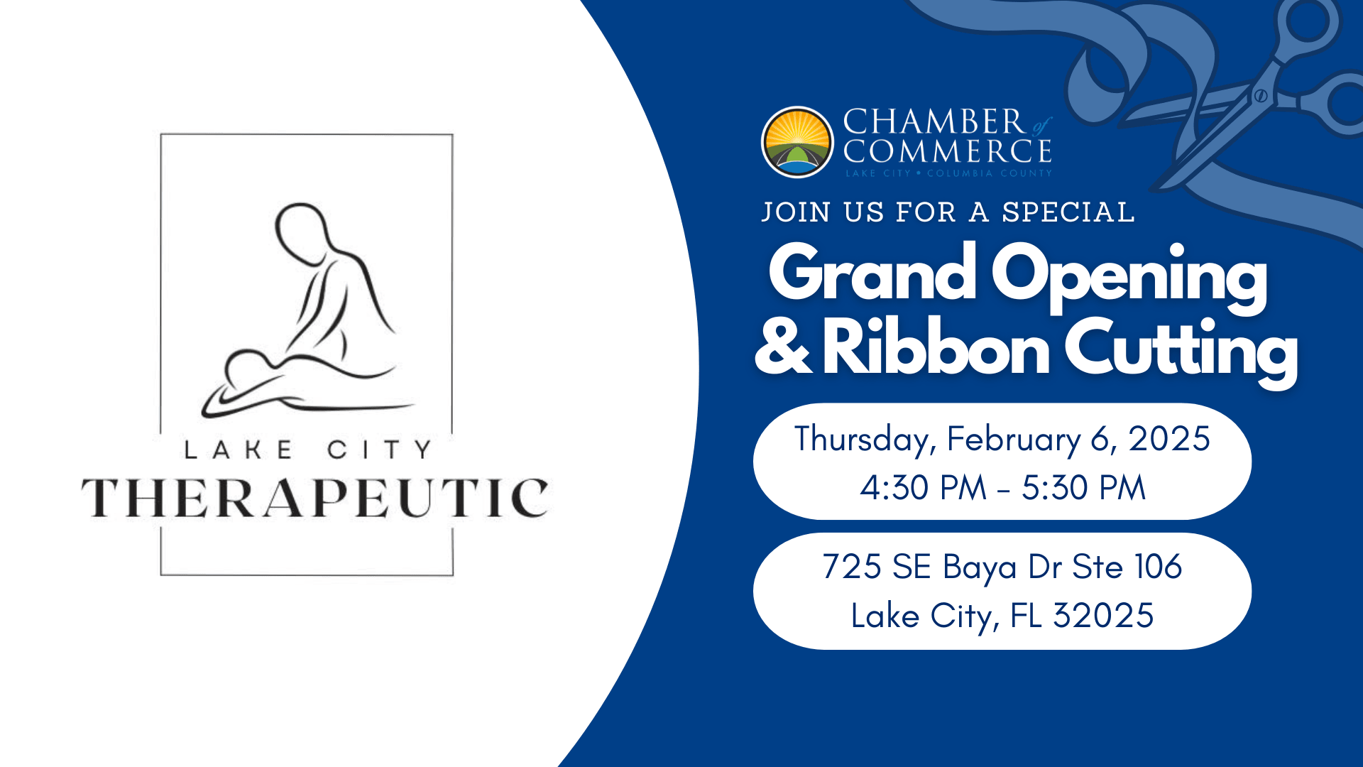 The Lake City - Columbia County Chamber of Commerce is proud to announce that Lake City Therapeutic is celebrating their grand opening with a ceremonial ribbon cutting.