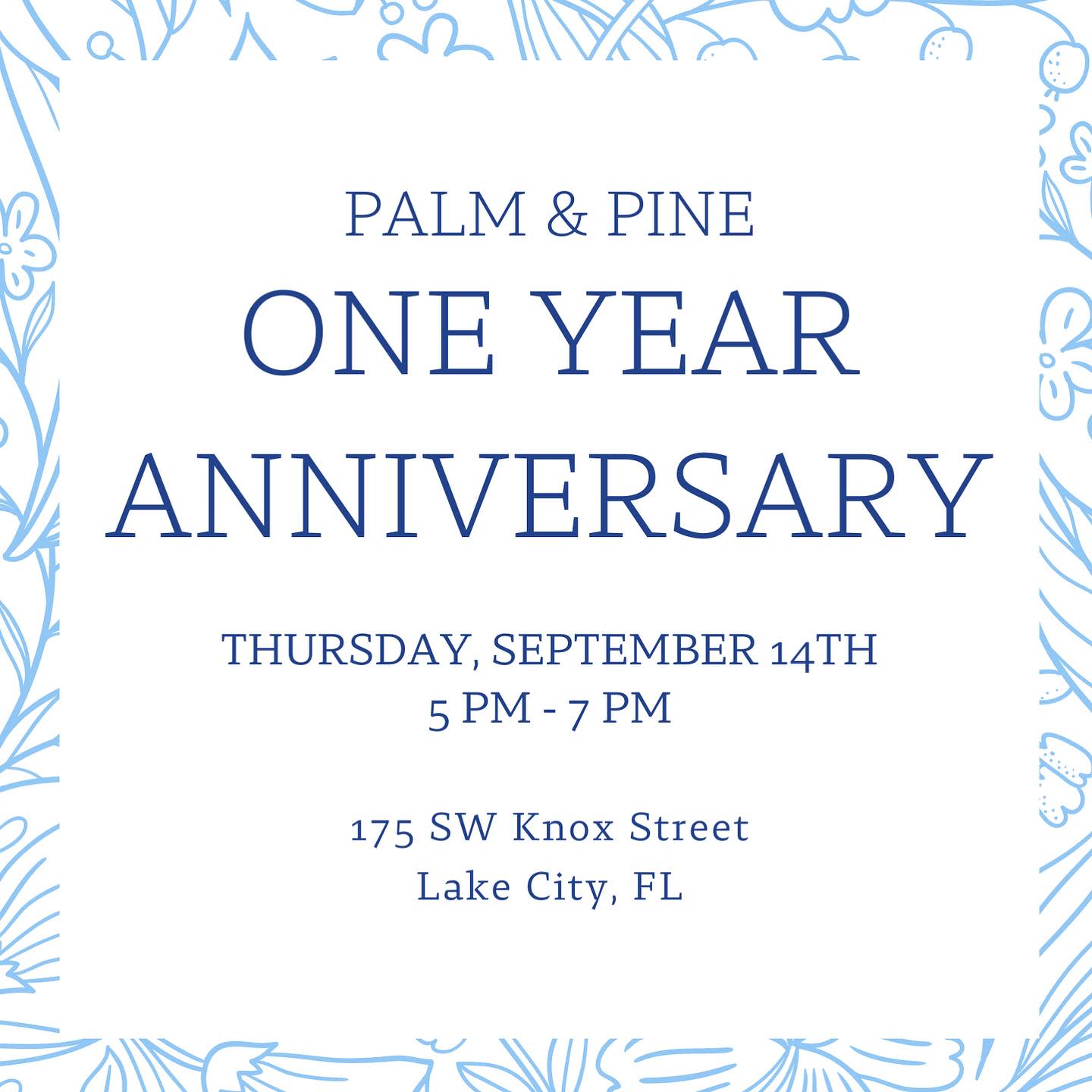 Palm & Pine One Year Anniversary!