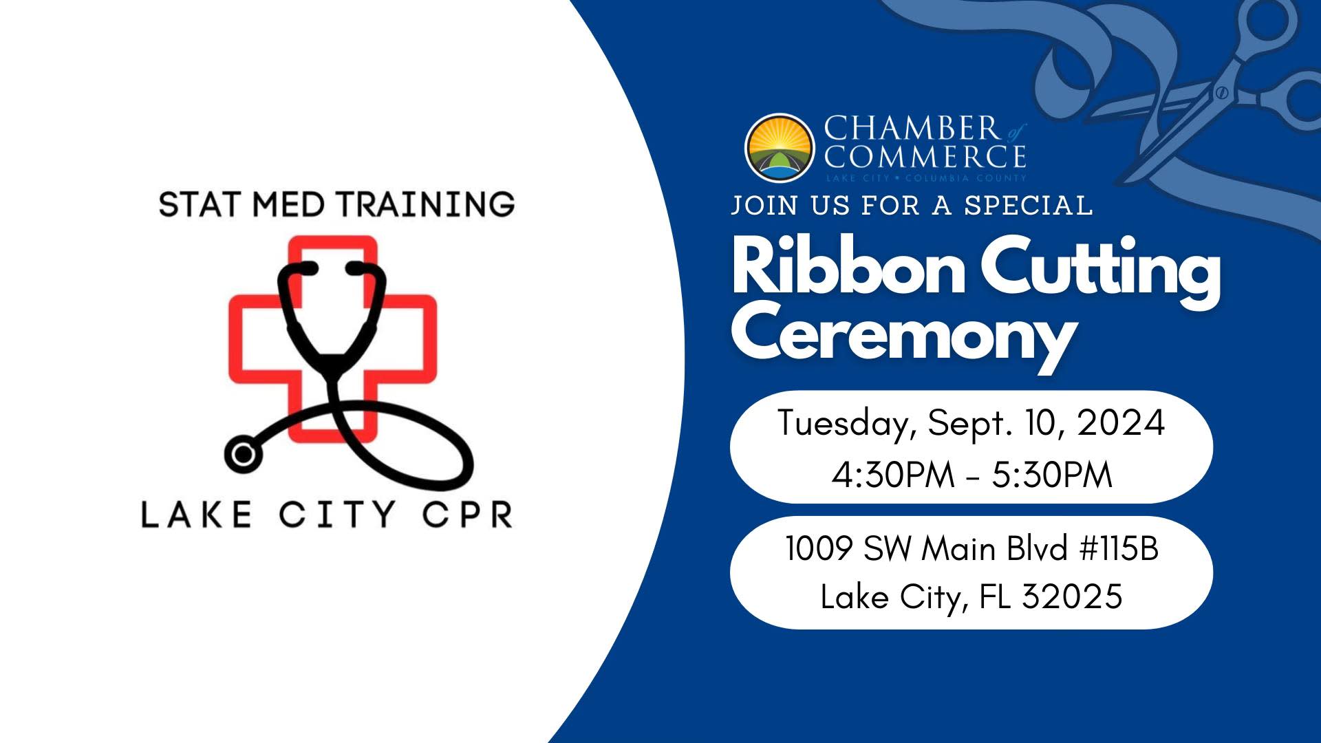 The Lake City - Columbia County Chamber of Commerce is proud to announce that STAT Med Training is celebrating their grand opening in Lake City with a ceremonial ribbon cutting.
