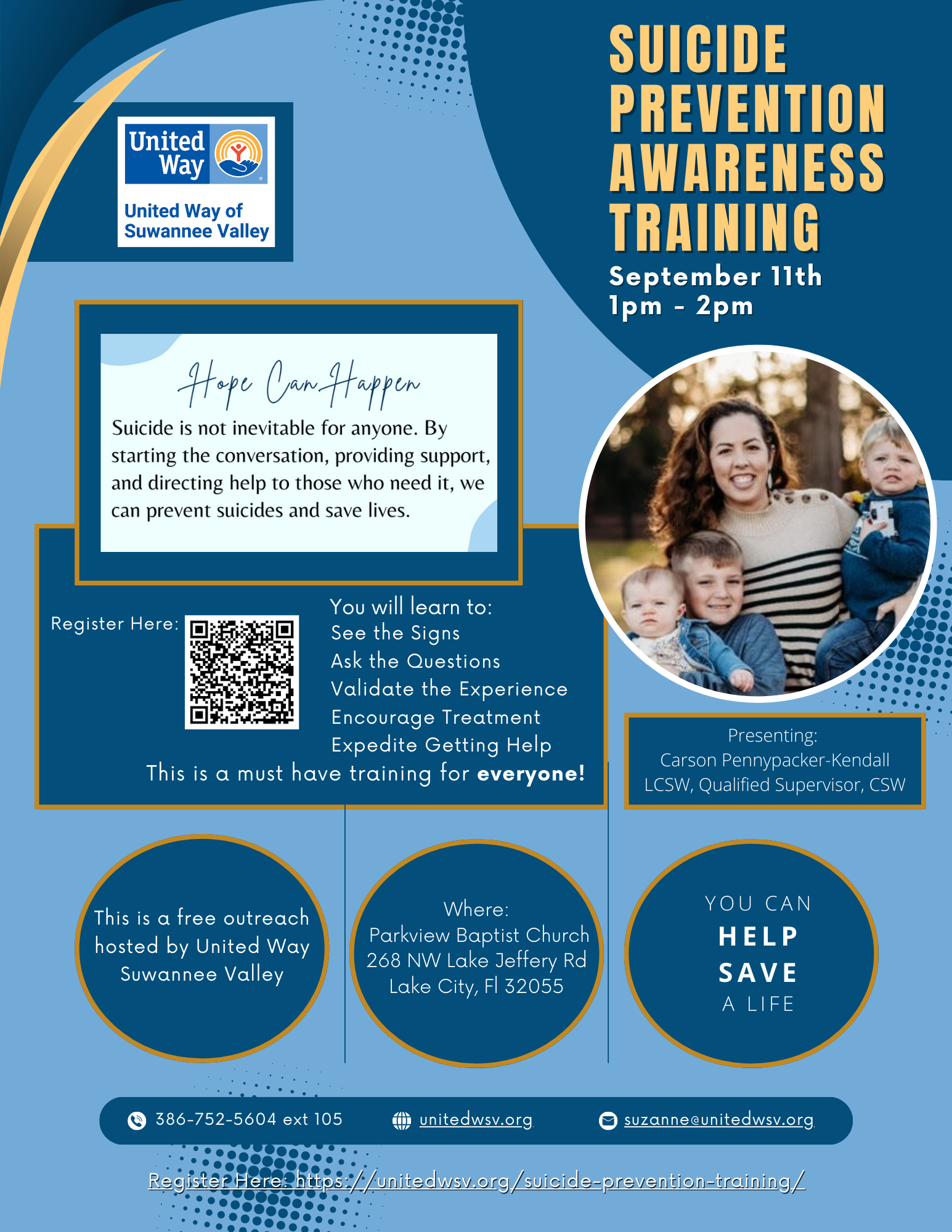 Suicide Prevention Awareness Training presented by United Way of Suwannee Valley