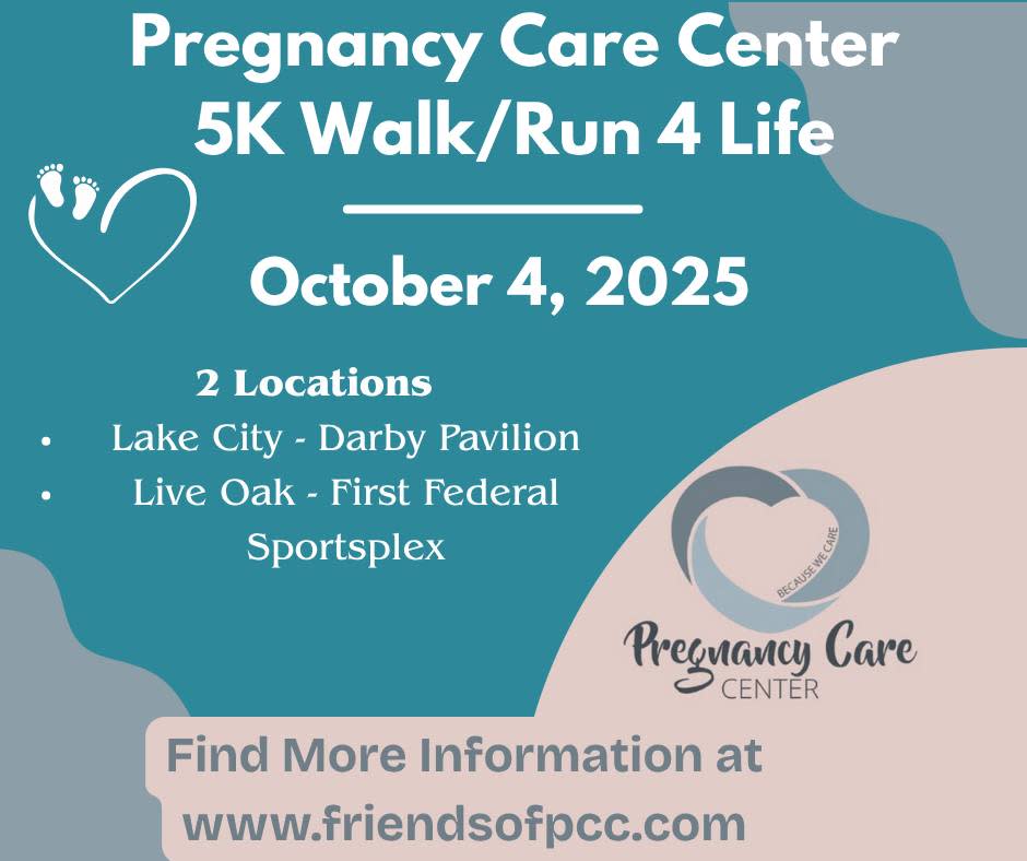 Save the Date - Start making plans to Walk 4 Life - October 4! 2 locations - Lake City and Live Oak.