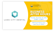 You're invited to the November "Business After Hours" networking event hosted by Lake City Dental on November 20, 2025 from 5:00pm - 6:00pm! Experience a relaxed and social atmosphere where you can connect with other business leaders and...